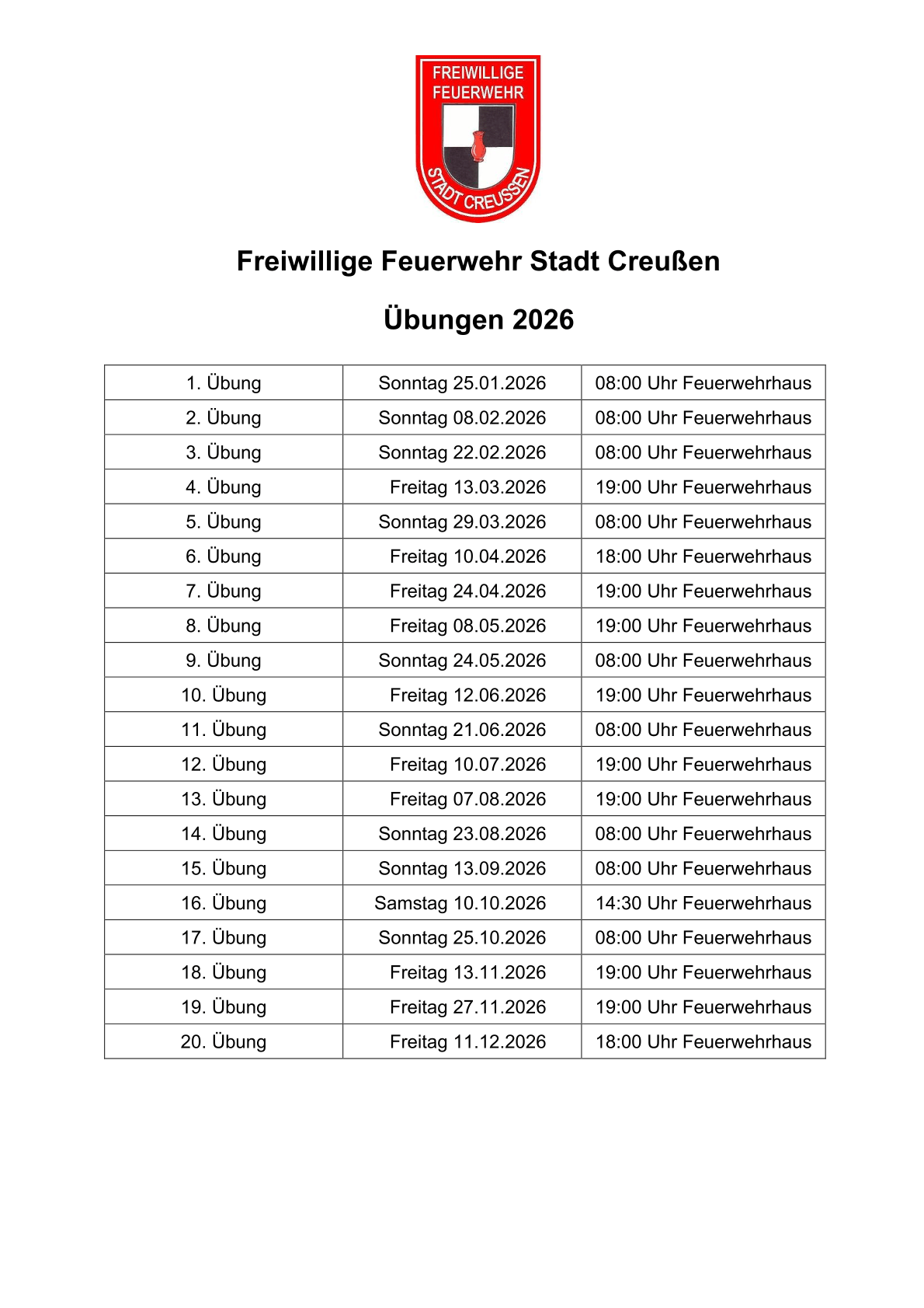 Übungstermine 2026