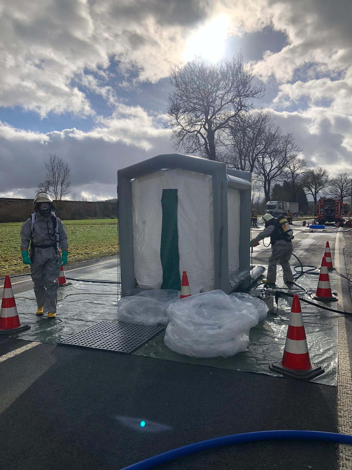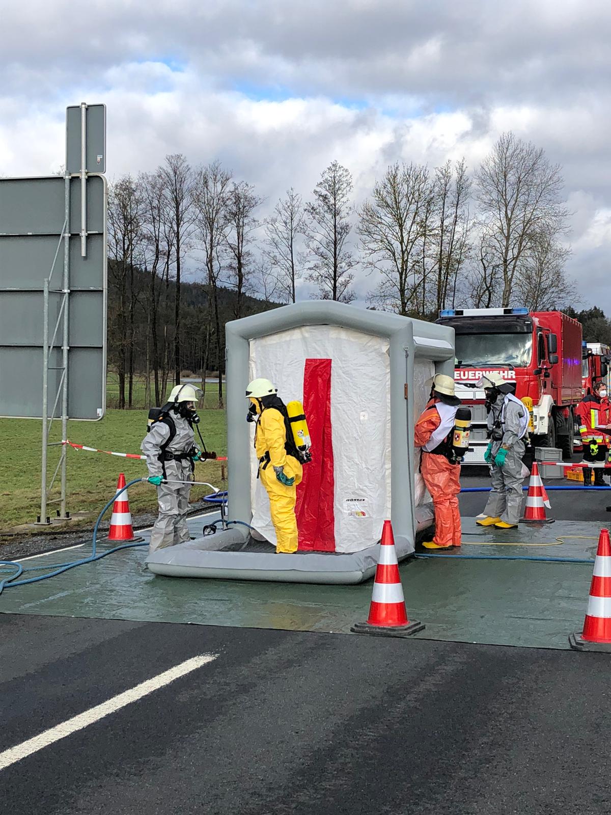 Die Feuerwehr Creußen wurde mit der Meldung "Technische Hilfeleistung, Dekon" auf die Bundesstraße 2, Höhe Einfahrt Zips alarmiert. Vor Ort trat aus einem Gefahrgut-LKW Natronlauge aus. Um weitere Schäden zu vermeiden, wurde die Ladung zum Abtransport umgeladen. Die Feuerwehr Creußen übernahm die Dekontamination der Einsatzkräfte mit Chemikalienschutzanzügen.