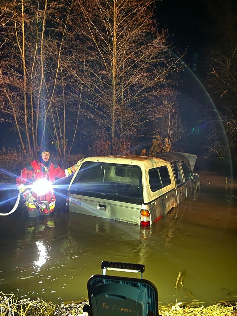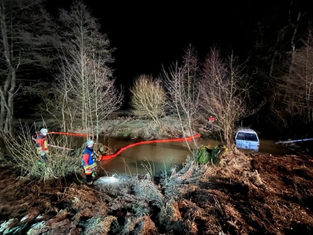 Vor Ort steckte ein Fahrzeug neben der Fahrbahn im Roten Main fest. Der Fahrer konnte mit unserer Hilfe befreit und dem Rettungsdienst übergeben werden. Wir sicherten das Fahrzeug gegen wegrutschen. Anschließend wurden Ölsperren errichtet, um eine Verunreinigung des Gewässers zu verhindern.