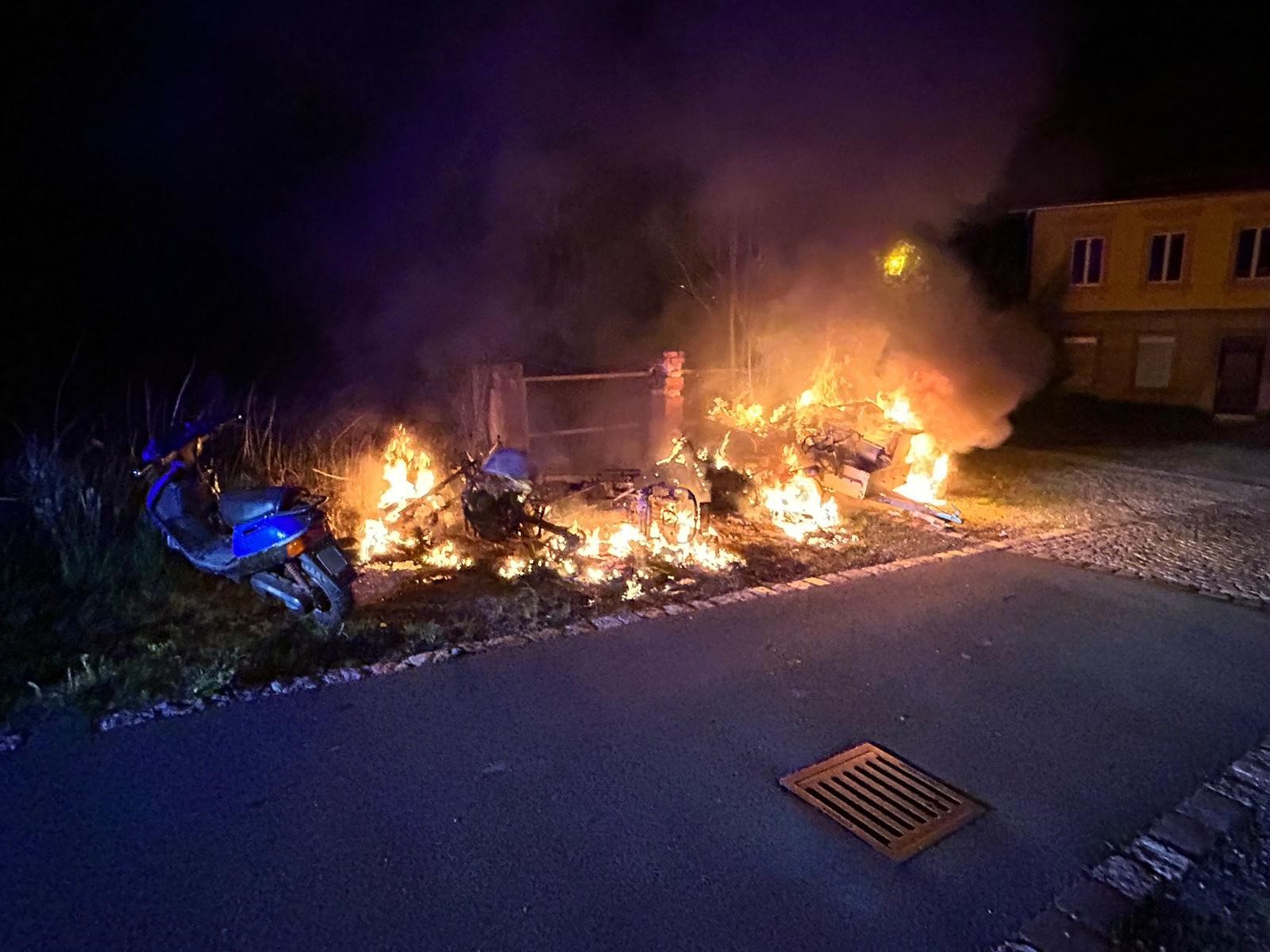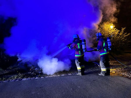 Wir wurden zu einem Garagenbrand in Creußen alarmiert. Bei Erkundung stellte sich heraus, dass keine Gebäude sondern im Freien abgestellte Fahrzeuge brannten. Mit dem Schnellangriff konnte das Feuer zügig gelöscht werden.