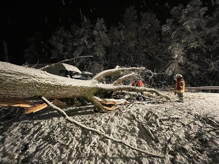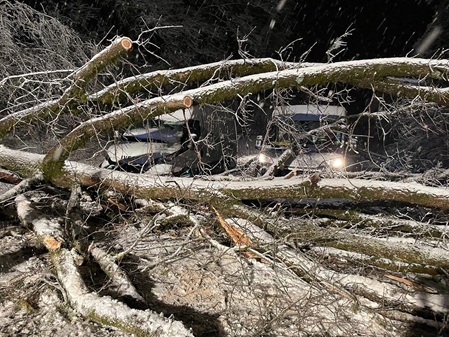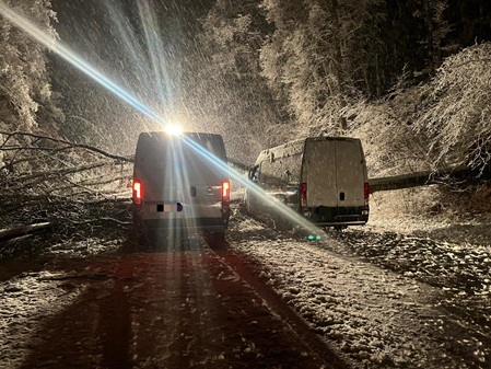 Der Baum wurde durch uns beseitigt und die beiden Transporter befreit.