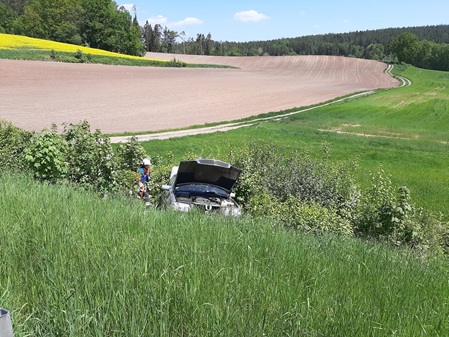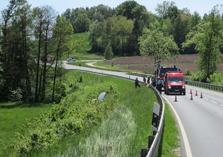 Glücklicherweise war keine Person mehr im Fahrzeug. Der verunfallte PKW wurde gegen wegrutschen gesichert und anschließend von einem Abschleppunternehmen geborgen.