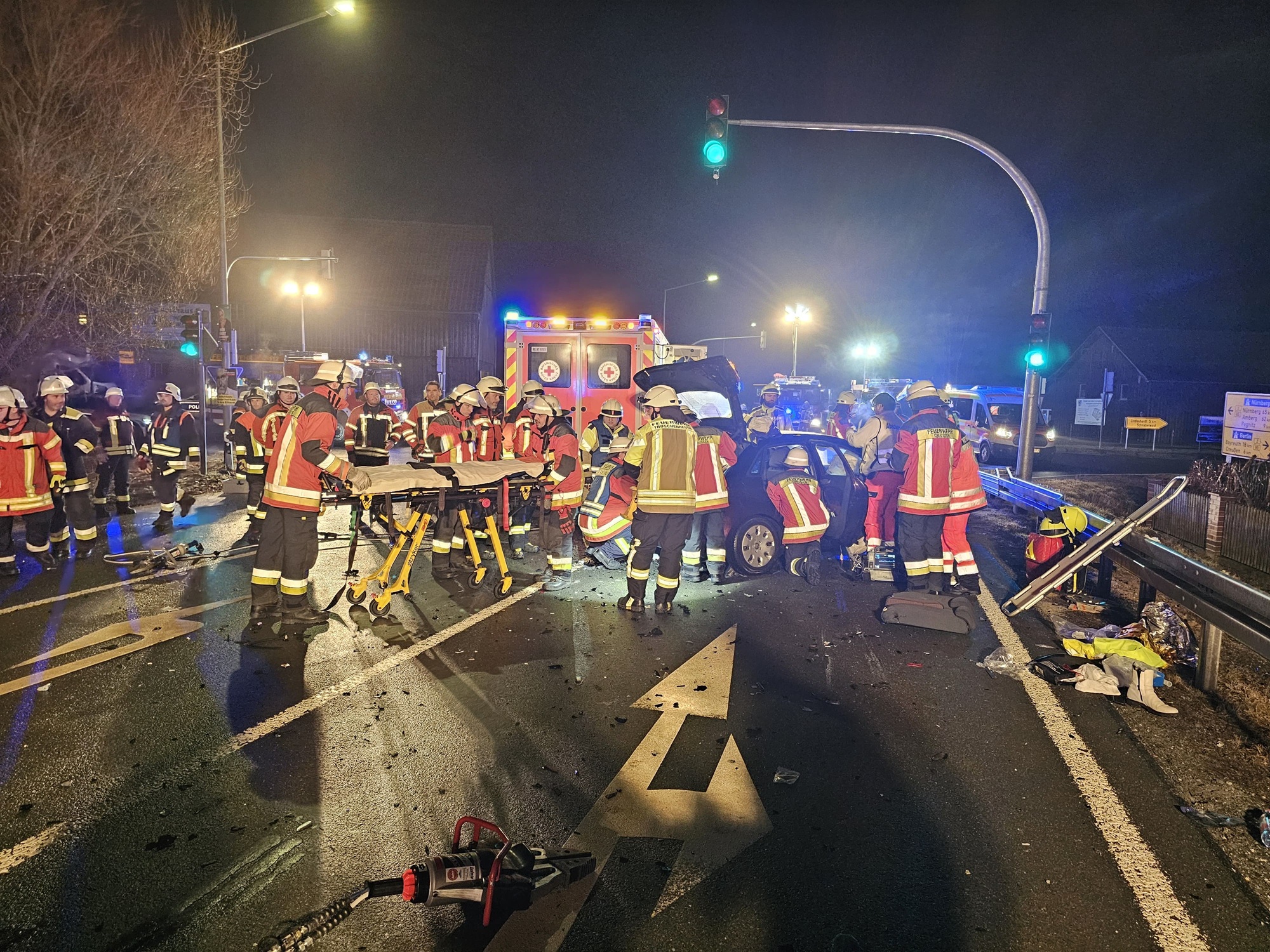 Am 28.02.2025 um 20:09 Uhr, wurde die Feuerwehr Creussen zu einem schweren Verkehrsunfall auf die B2 bei Schnabelwaid alarmiert. An der Einsatzstelle wurden zunächst mehrere Verletzte durch die Feuerwehren medizinisch erstversorgt und betreut. Zusammen mit der FF Troschenreuth wurde eine Person mit Schere und Spreizer aus einem PKW patientengerecht gerettet. Während des Einsatzes musste die B2 komplett gesperrt werden. Wir wünschen allen Beteiligten gute Besserung.